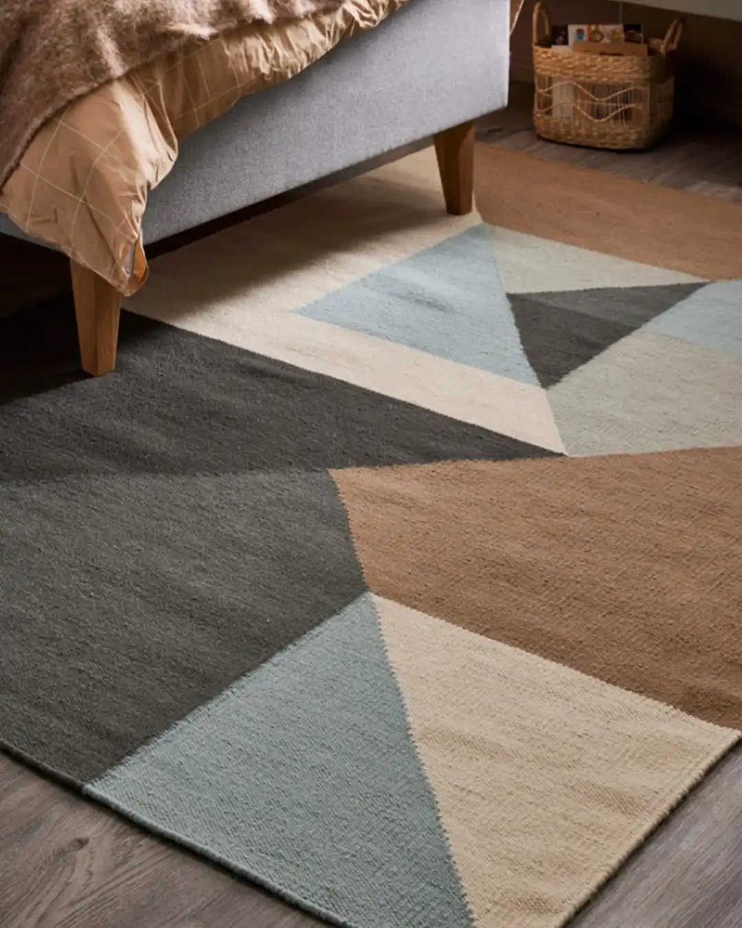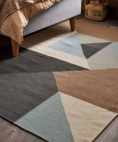 Triangle-matossa on kaunis graafinen kuviointi, jossa yhdistyvät tummanharmaa, vaaleanharmaa, beige, valkoinen sekä turkoosinsininen. Neutraalien sävyjen ja raikkaan turkoosin tasapainoinen yhdistelmä luo modernin mutta elävän ilmeen, tuoden tilaan luonnetta ja hienovaraista väriä. Triangle on helppo mutta näyttävä tapa tuoda graafisuutta ja harkittuja väripilkkuja sisustukseen. Napakasti kudottu korkealaatuisesta villasta, Triangle on kestävä ja pitkäikäinen matto arjen käyttöön. Helppohoitoisen ja kulutusta kestävän materiaalinsa ansiosta se sopii moniin kodin tiloihin, aina keittiöstä ja eteisestä olohuoneeseen.